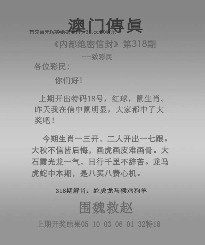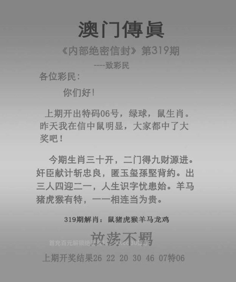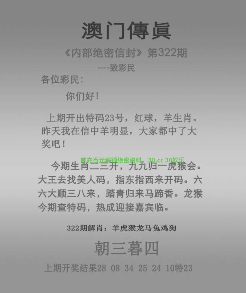 解:今期生肖三十开,二门得九财源进。三十解30鼠,二门解1头,九解鸡。奸臣献计斩忠良,匿玉玺孫堅背約。奸臣忠良解牛马狗猪。出三人四迎二一,人生识字忧患始。二一解鸡,羊马猪虎猴有特,一一相连当为贵。明肖羊马猪虎猴。